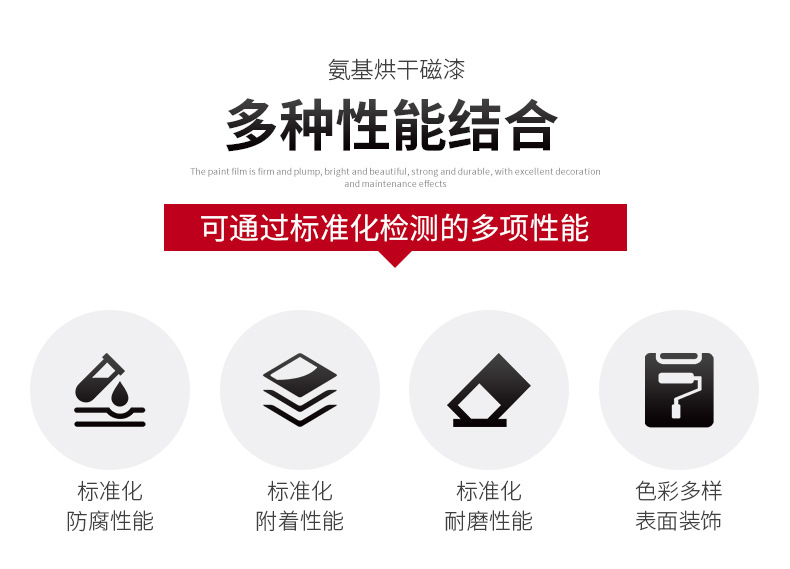 標準化附著力:氨基烘干漆具有可通過檢測標準化附著力,對基材具有標準化遮蓋能、標準化粘結基材性能;