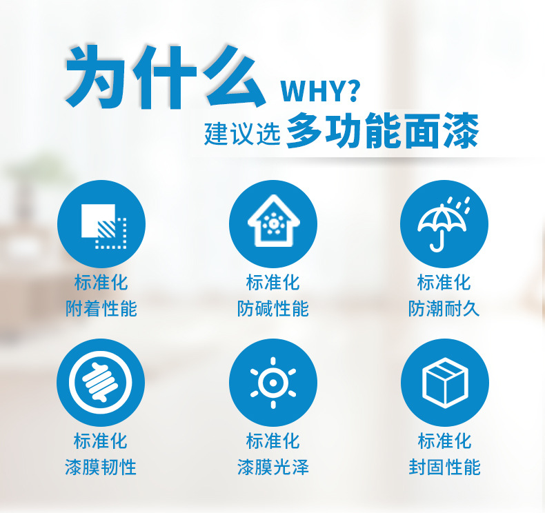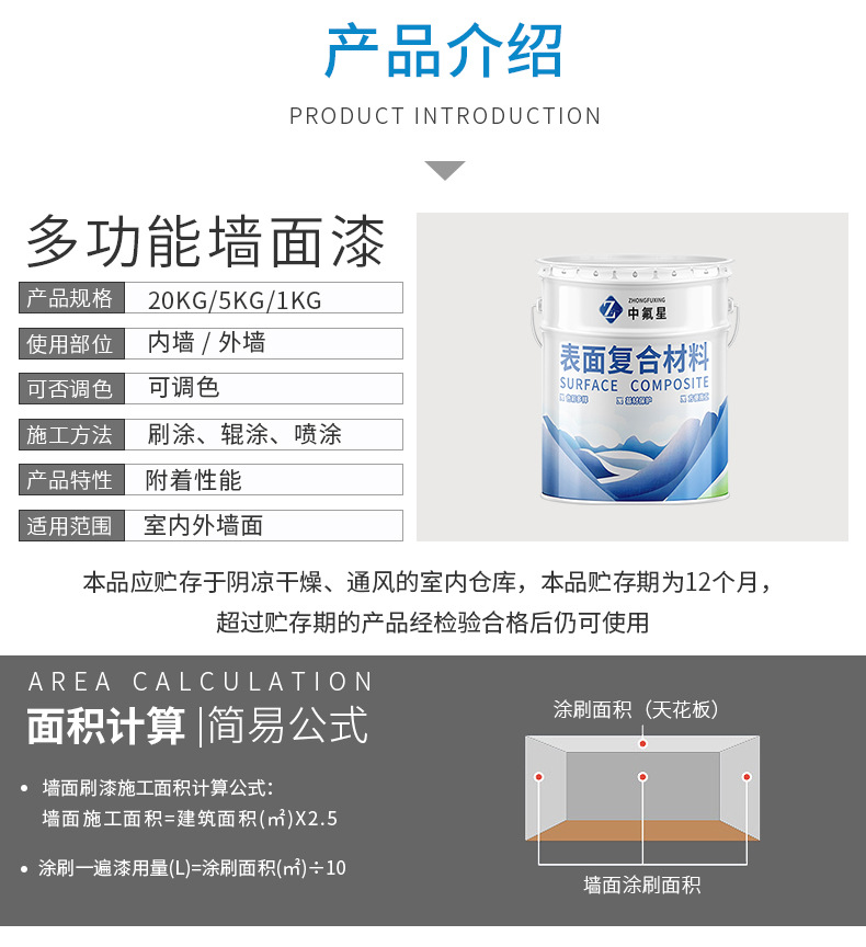 【中氟星】多功能墻面面漆的主要功能是裝飾和保護建筑內(nèi)外部墻面,使建筑整潔美觀,同時能起到保護建筑物墻面的作用,延長其使用壽命。