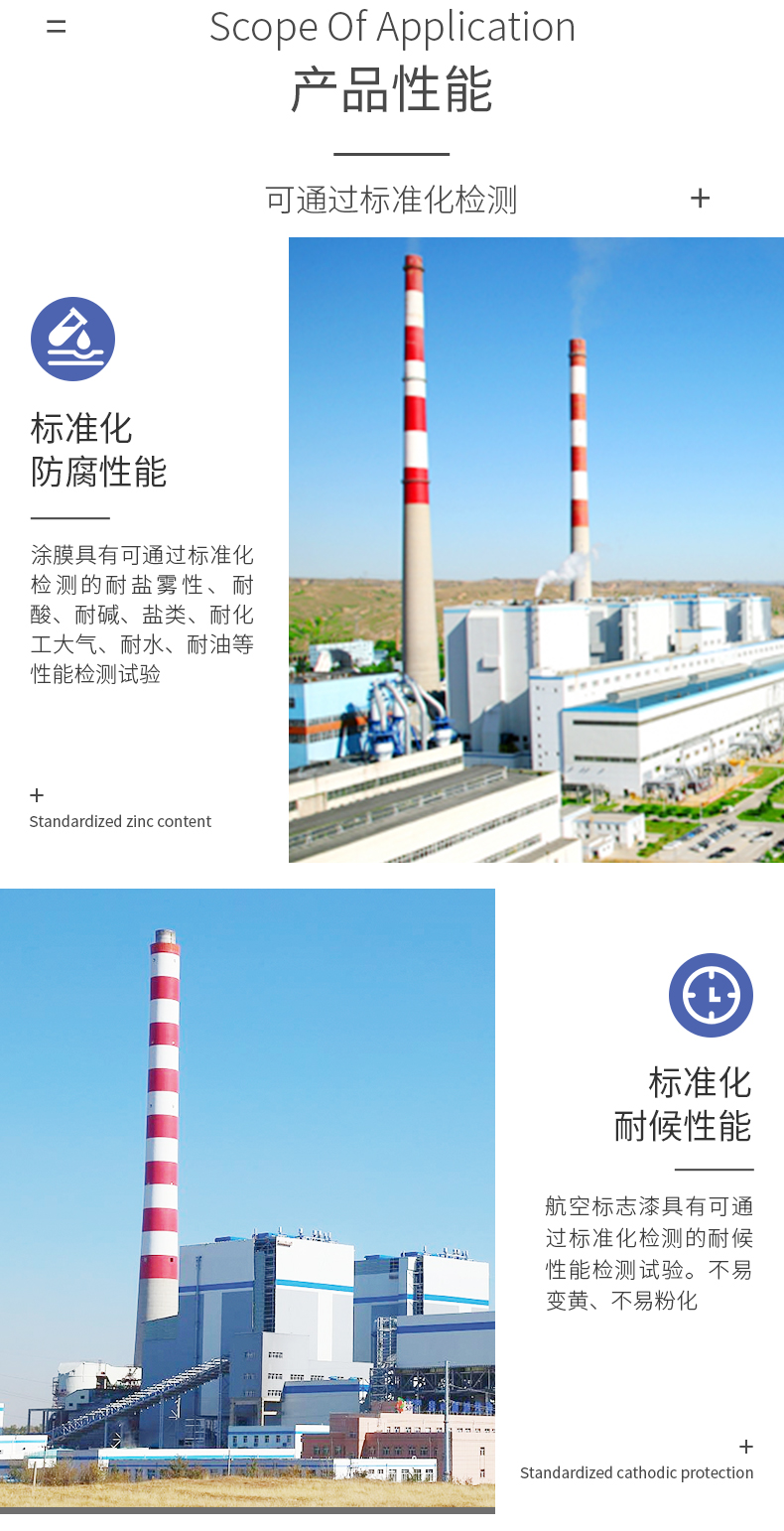 標準化耐腐蝕性能:涂膜可通過耐鹽霧性、耐酸、耐堿、鹽類、耐化工大氣、耐水、耐油、耐溫等性能的標準化檢測;