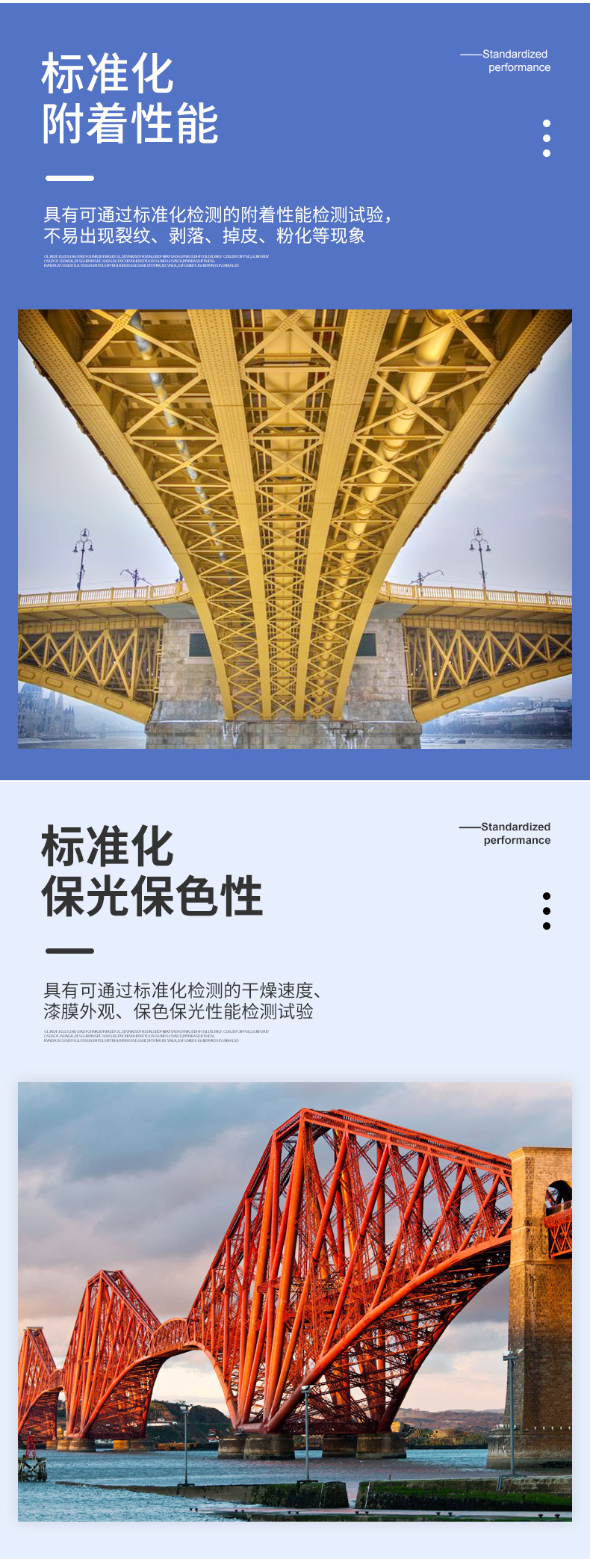 標(biāo)準(zhǔn)化附著力:具有可通過(guò)標(biāo)準(zhǔn)化檢測(cè)的附著力、防滲透性,致密性出色,能有效防止水分、二氧化碳的滲透及有害的物質(zhì)的侵蝕,可有效提高防腐性能;